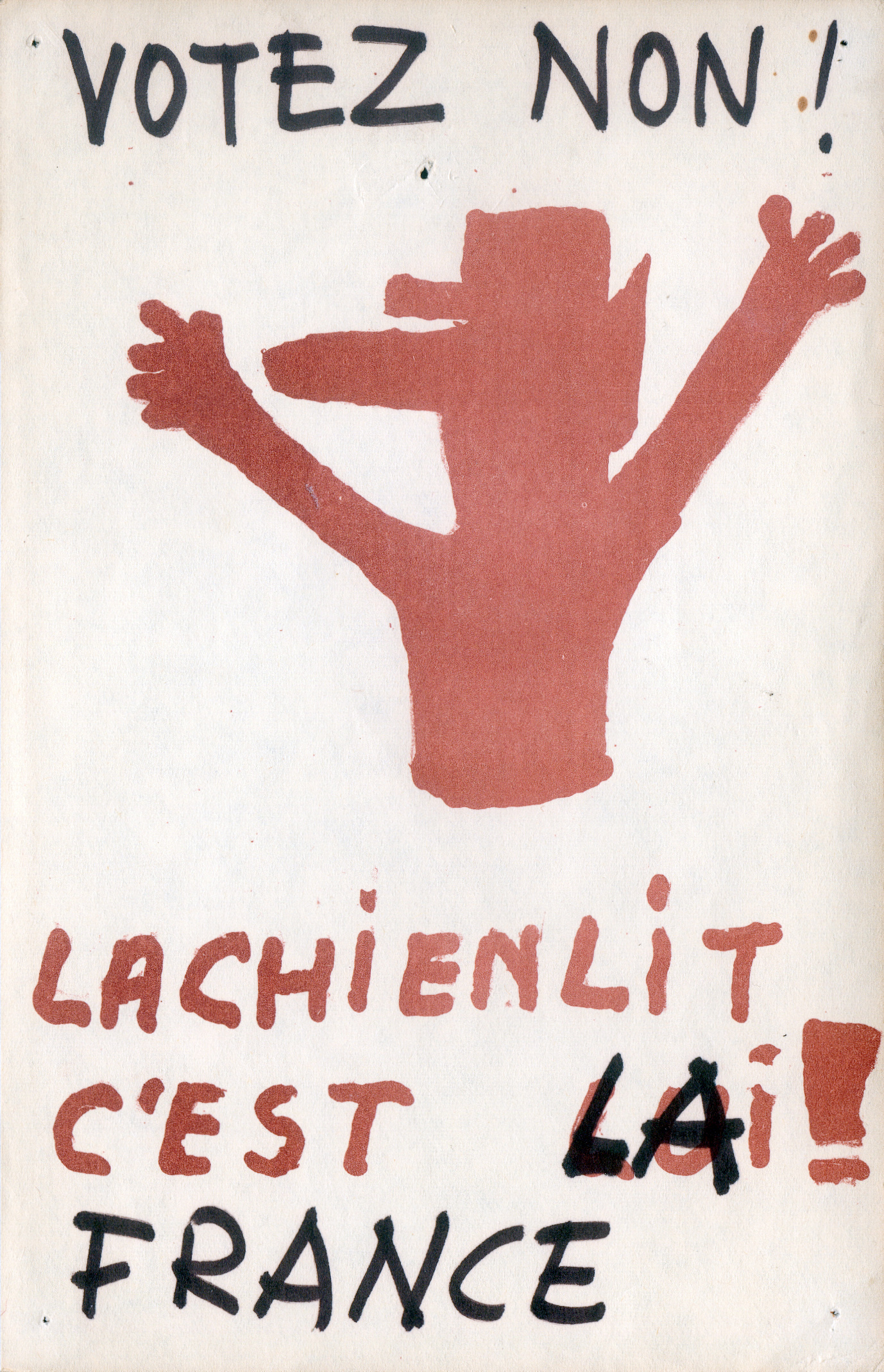 Et, paradoxalement il est l’auteur anonyme d’affiches de Mai 1968 dont la célèbre « La chienlit c’est lui ! ».